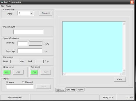 This project was not aimed for an end user who requires high level user interface. Therefore, Microsoft® HyperTerminal provided more than enough to test the subject. However, I found the use of additional GUI not only attractive but easy to manipulate commands by pressing buttons with the use of regular methods of input without the continuous need of pressing the enter key after each command and the need of memorizing each command.